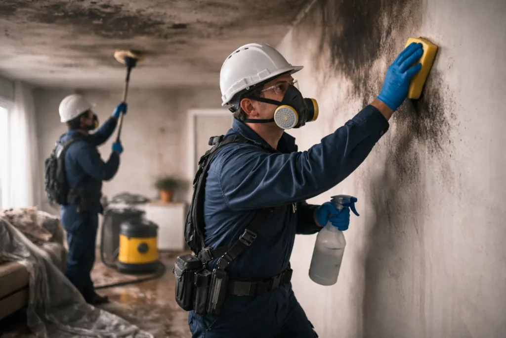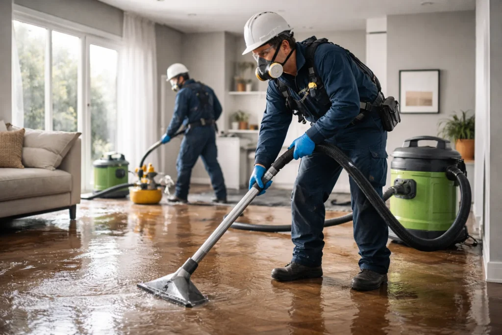 Rapid water extraction and structural drying to prevent further damage and mold growth.